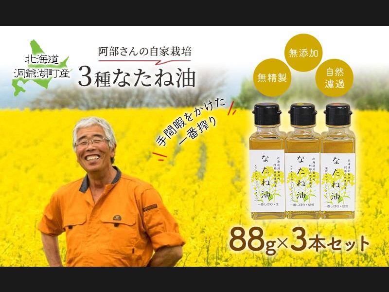 洞爺湖町産 なたね油 3種セット【自然濾過 手間と時間をかけた一番搾り】...