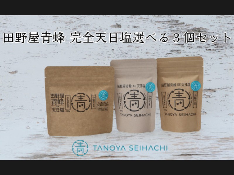 塩職人・田野屋青蜂が作る完全天日塩4種類(大粒・中粒・小粒・ミル用)から自由に3個お選びいただけるセットです。 山のミネラル...