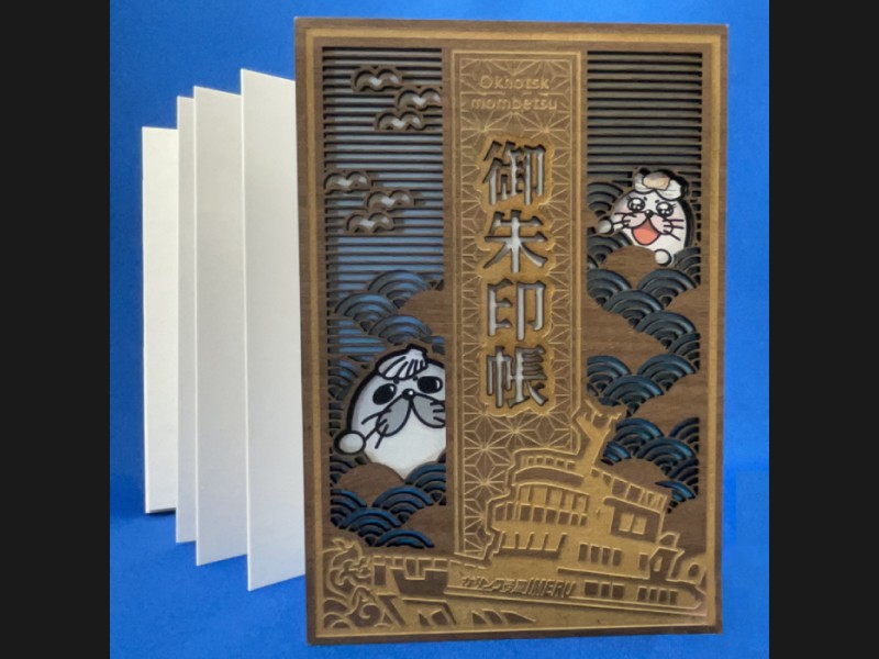 (株)ソーゴーが独自にデザインした、オホーツク紋別の御朱印帳です。 表紙のMDFボードにレーザー彫刻と切断加工し、紋別のキャラクタ...