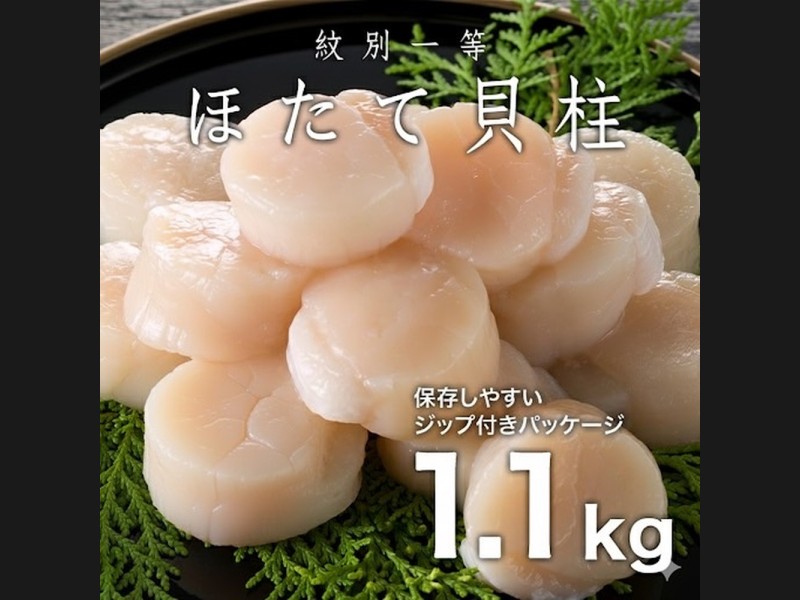 34-34 紋別一等~冷凍帆立貝柱1.1kg×1パック