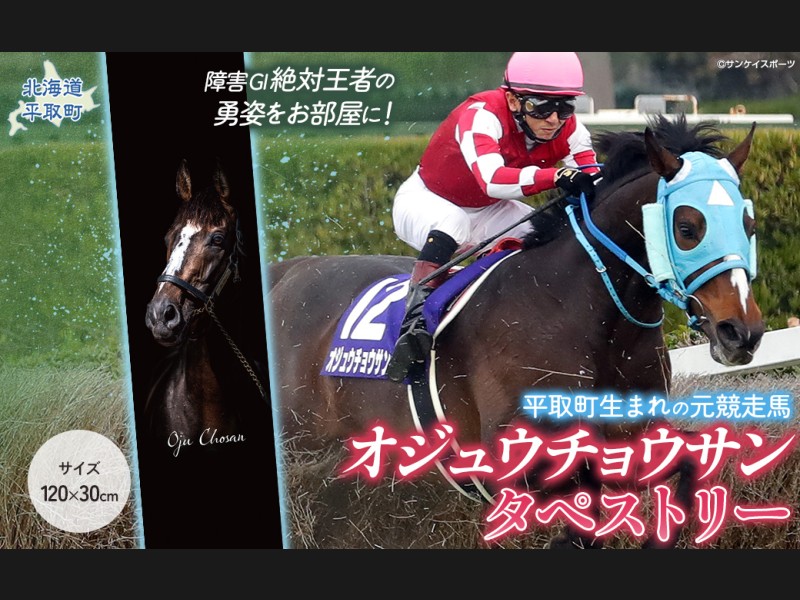 【返礼品の説明】 障害レース界の絶対王者「オジュウチョウサン」のデザインが印刷されたタペストリーです。 POPUPSHOPなどで見本掲...