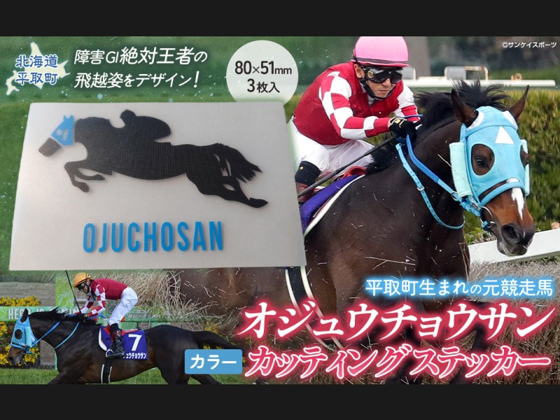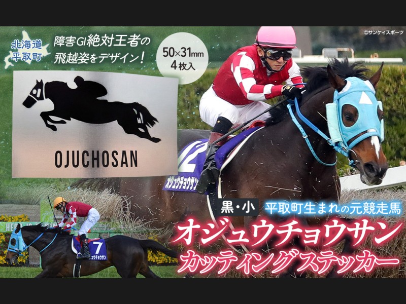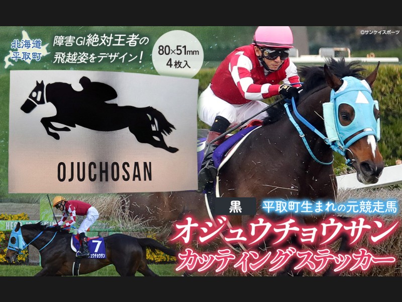 【返礼品の説明】 障害レース界の絶対王者「オジュウチョウサン」が豪快に飛越する姿をデザインした様々な物にお貼りいただける、長期...