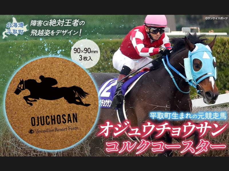 【返礼品の説明】 障害レース界の絶対王者「オジュウチョウサン」が豪快に飛越する姿をデザインしたオリジナルコースターです。 カフ...