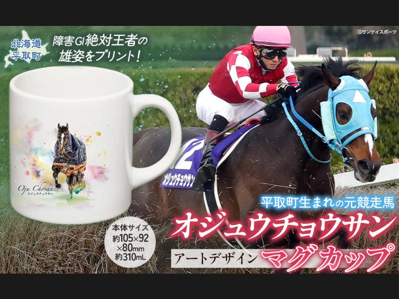 【返礼品の説明】 障害レース界の絶対王者「オジュウチョウサン」のアートデザインがプリントされた新作のオリジナル陶器マグカップで...