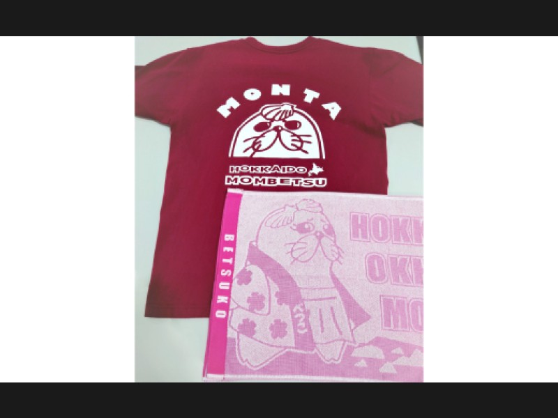 17-59 ゆるキャラ紋太・べつこグッズ(Tシャツ[ブラックM]、タオル[ピンク])