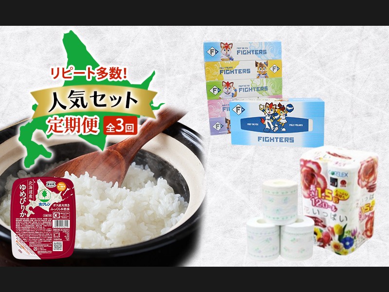 【配送不可:沖縄県・離島】 生活必需品のティッシュ・トイレットペーパー、常備品に役立つごはんパックを3ヵ月連続でお届けいたします...