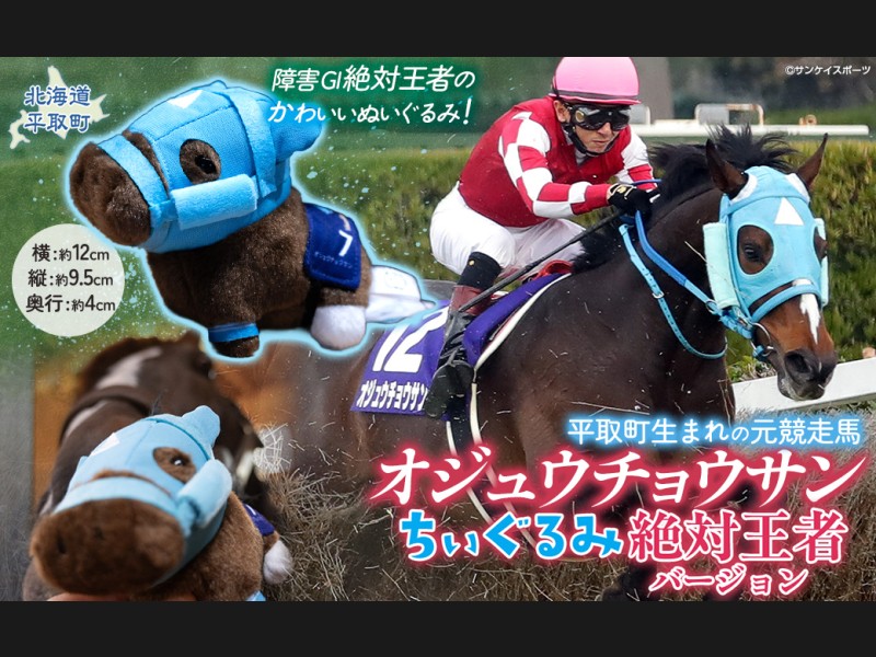 【返礼品の説明】 障害レース界の絶対王者「オジュウチョウサン」の可愛いぬいぐるみです。 車、部屋好きな所に飾ってください。 ...