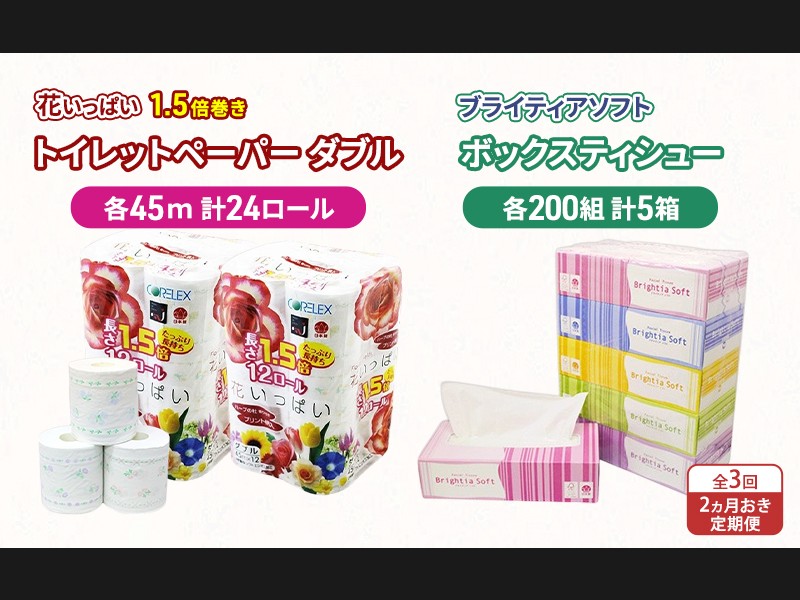 定期便 全3回 長持ち 1.5倍巻き 花いっぱい トイレットペーパー ダブル 45...