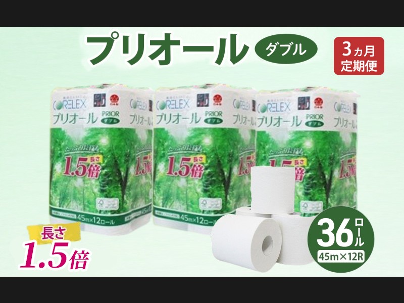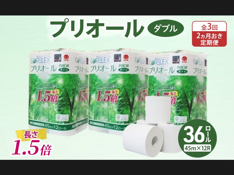 定期便 全3回 プリオール・ピコ トイレット ペーパー 1.5倍巻き ダブル 45...