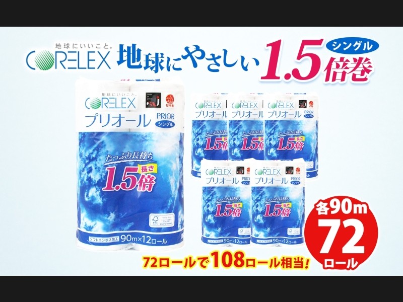 プリオール・ピコ トイレット ペーパー 1.5倍巻き シングル 90m 12ロール ...