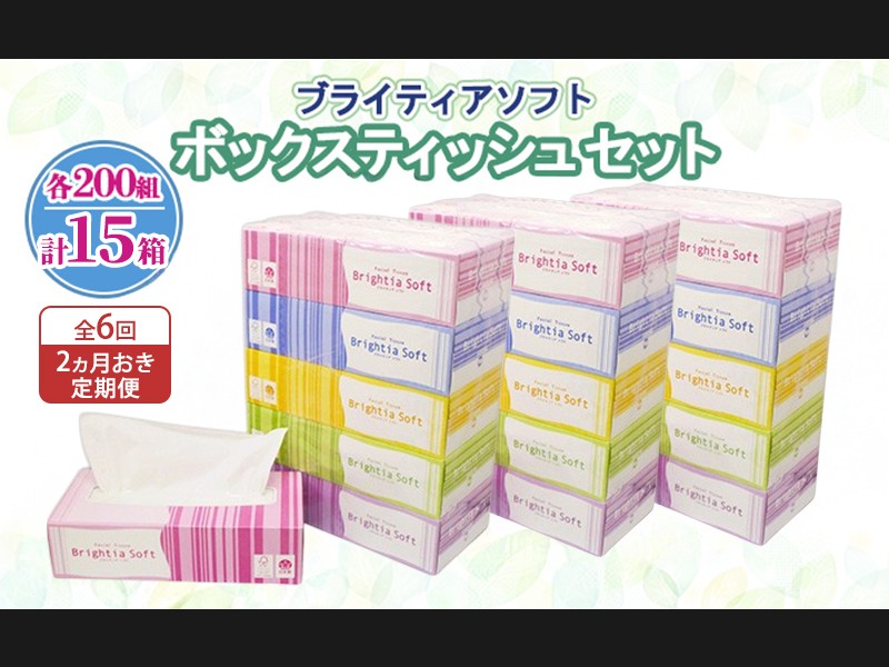 定期便 全6回 ブライティア ソフト ボックスティッシュ 200組 400枚 15箱 ...
