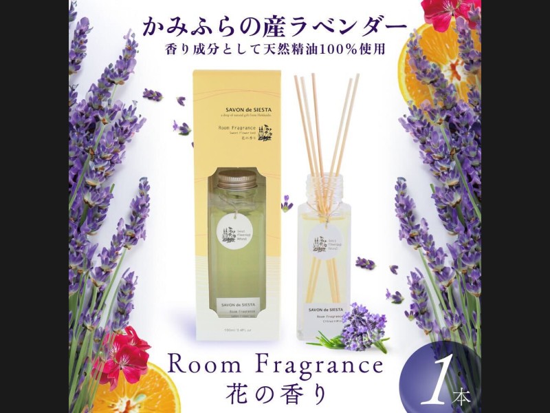 香りのよい、北海道上富良野(かみふらの)町のラベンダー油を配合した、花畑をイメージした香りのルームフレグランス(リードディフュ...