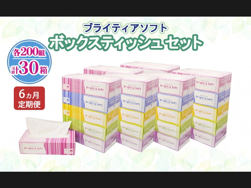 定期便 全6回 ブライティア ソフト ボックスティッシュ 200組 400枚 30箱 ...