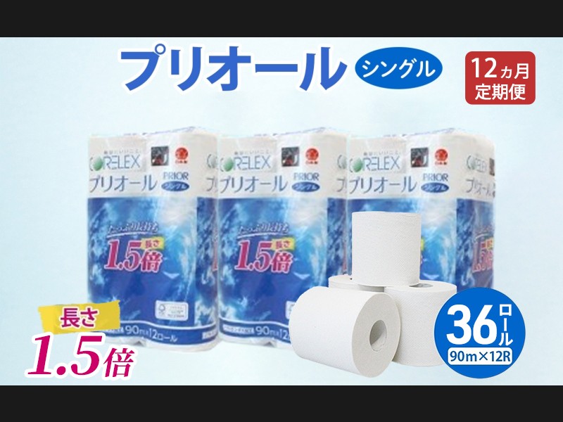 定期便 全12回 プリオール・ピコ トイレット ペーパー 1.5倍巻き シングル...