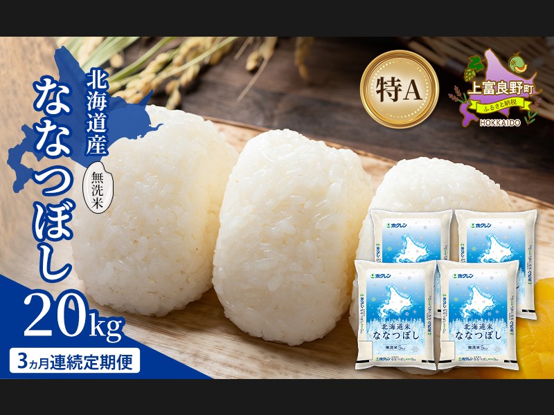 【3ヵ月連続定期便】北海道産 ななつぼし 無洗米 20kg 米 特A 獲得 白米 ...