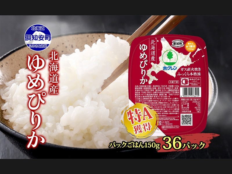 北海道産 ゆめぴりか パックごはん 150g 36パック 米 ホクレン 白米 ご飯 ...