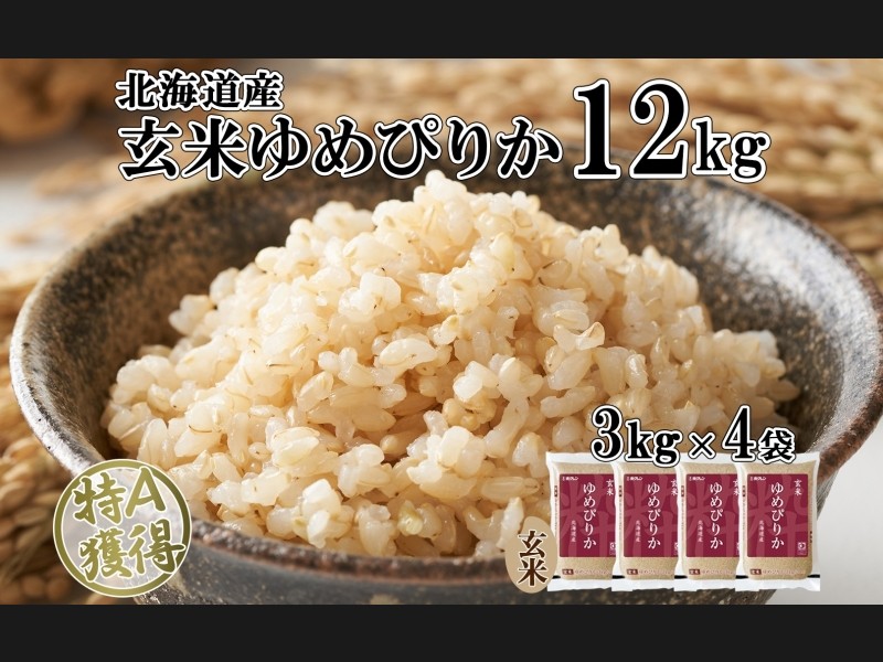 北海道産 ゆめぴりか 玄米 3kg×4袋 計12kg 小分け 米 特A 国産 ごはん グ...
