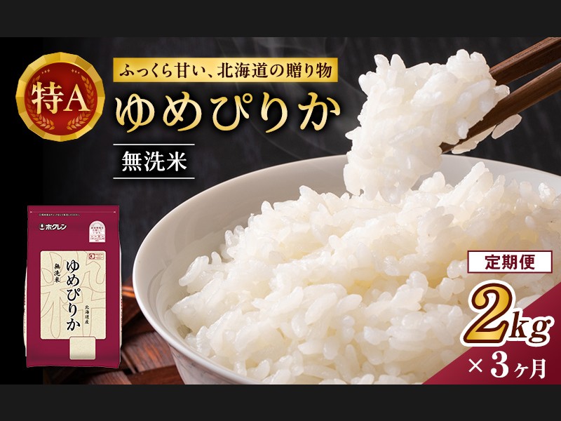 3ヵ月 定期便 (無洗米2kg)ホクレンゆめぴりか(無洗米2kg×1袋)袋はチャック...