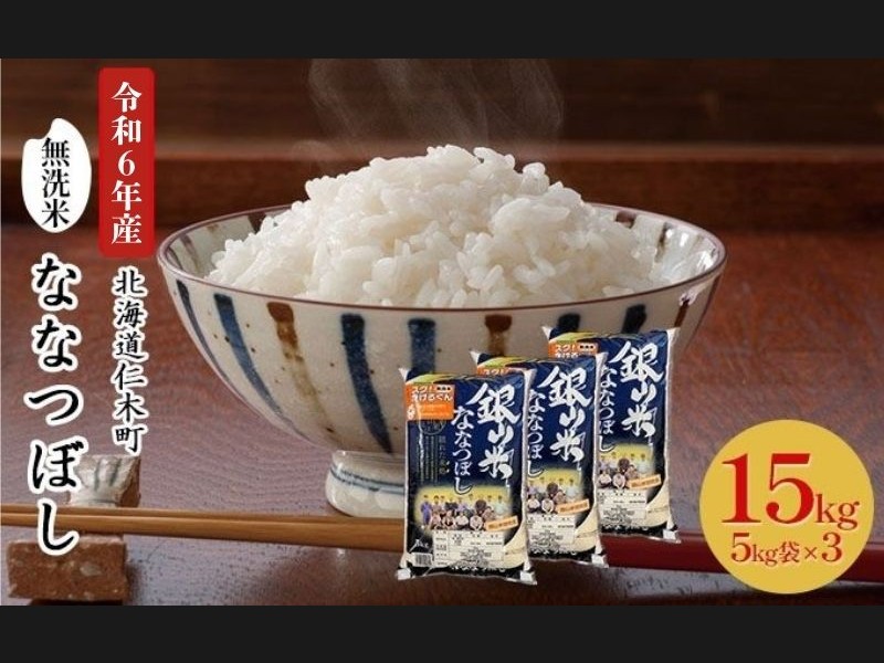 銀山米研究会の無洗米<ななつぼし>15kg(5kg×3袋) ライス 白米 精米 ブ...