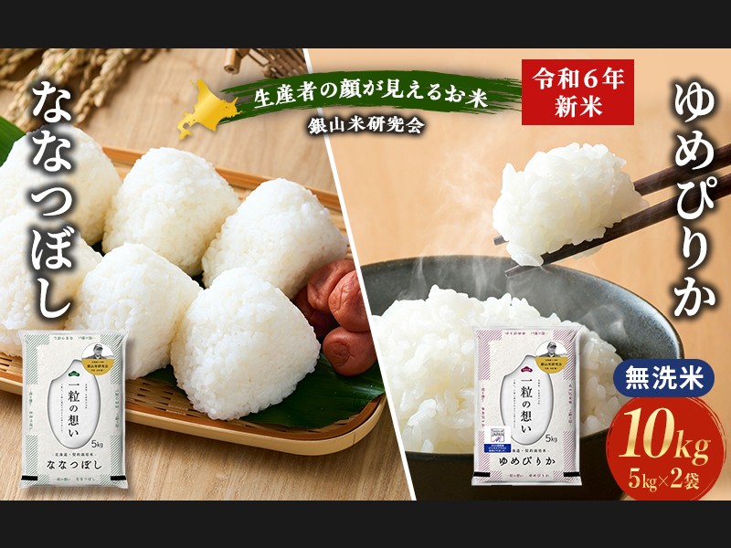 銀山米研究会の無洗米<ゆめぴりか&ななつぼし>セット 計10kg(各1袋×5k...