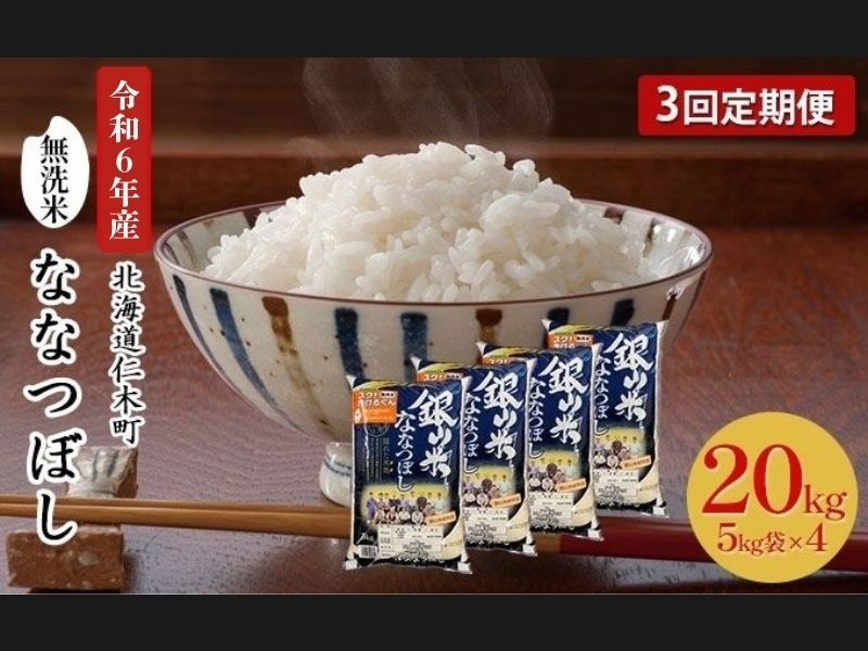 3ヵ月 定期便 銀山米研究会の無洗米<ななつぼし>20kg(5kg×4袋) ライス...