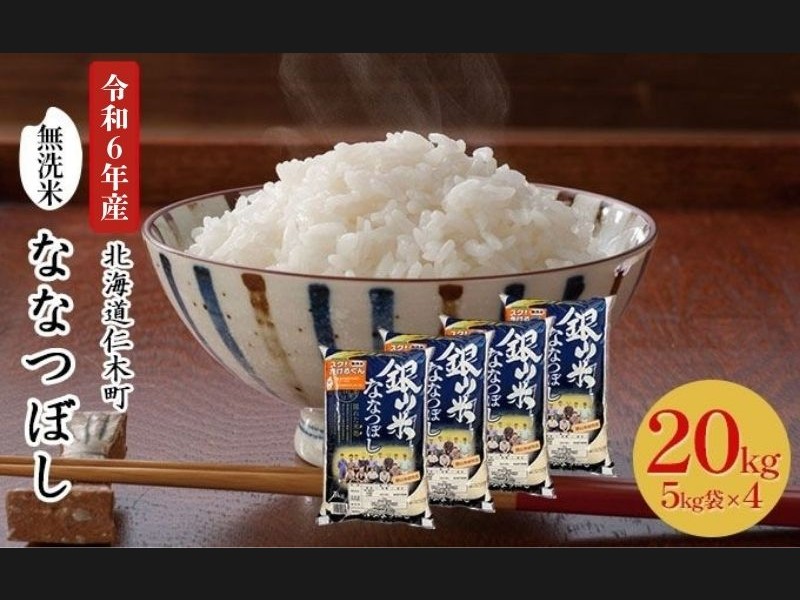 銀山米研究会の無洗米<ななつぼし>20kg(5kg×4袋) ライス 白米 精米 ブ...