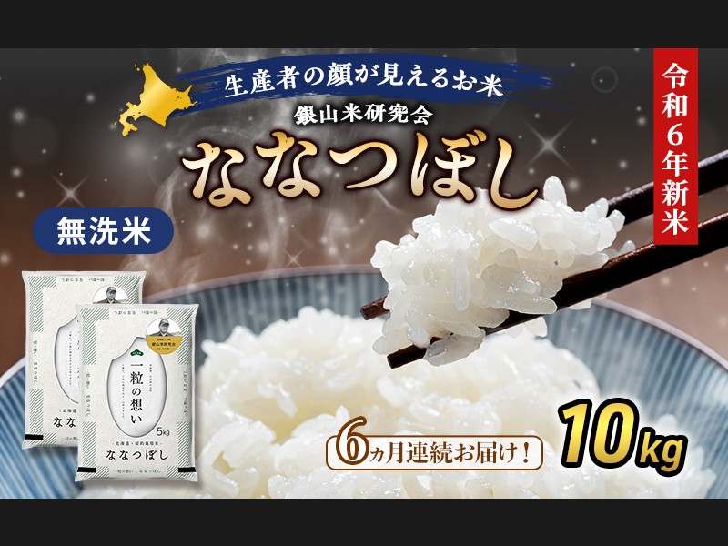 6ヵ月 定期便 銀山米研究会の無洗米<ななつぼし>10kg(5kg×2袋) ライス...