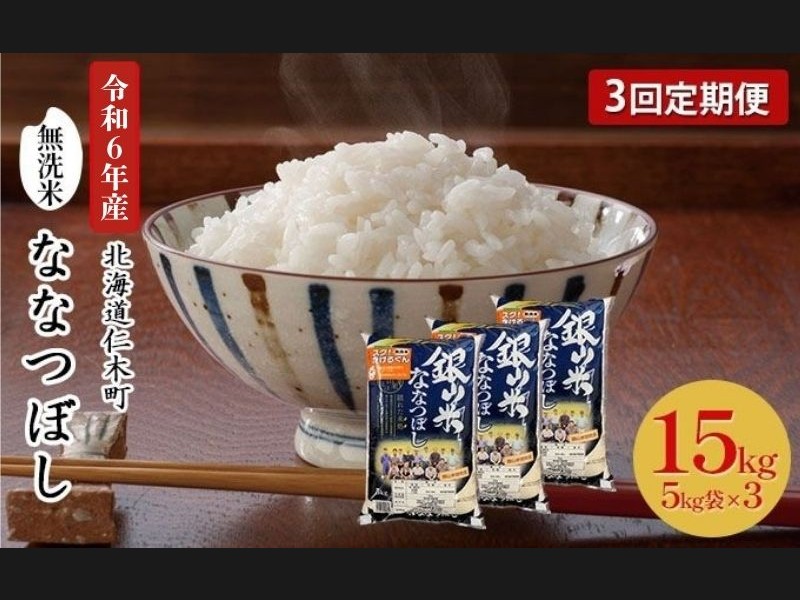 3ヵ月 定期便 銀山米研究会の無洗米<ななつぼし>15kg(5kg×3袋) ライス...