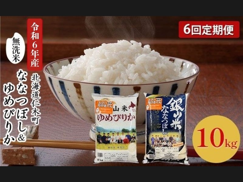 6ヵ月 定期便 銀山米研究会の無洗米<ゆめぴりか&ななつぼし>セット 計1...