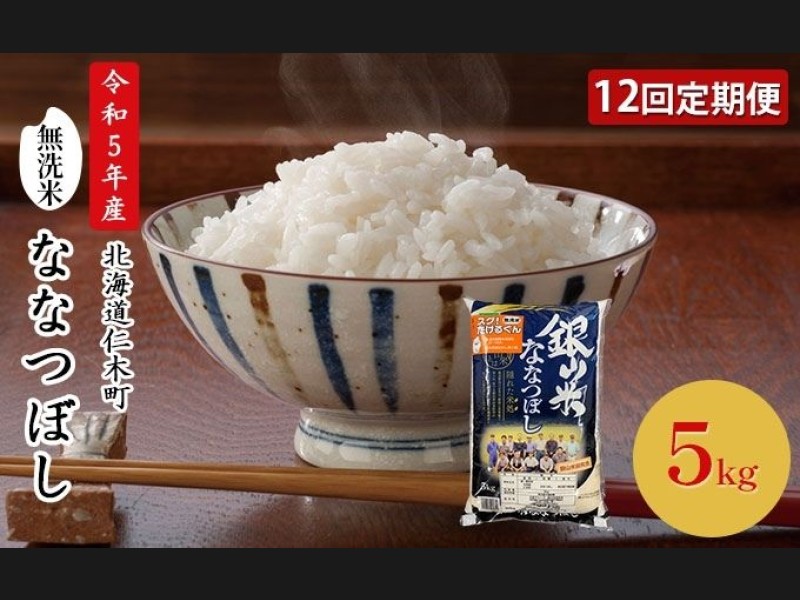 12ヵ月 定期便 銀山米研究会の無洗米<ななつぼし>5kg×1袋 ライス 白米 ...