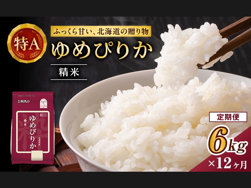 12ヵ月 定期便 ホクレンゆめぴりか(精米6kg(2kg×3袋))※チャック付袋 お...