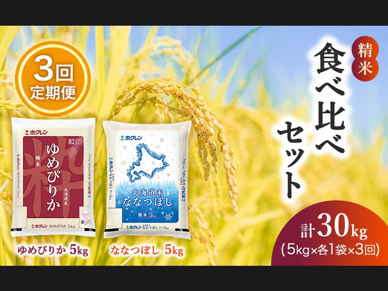 3ヵ月 定期便 食べ比べセット(精米10kg(ゆめぴりか:5kg、ななつぼし:5...