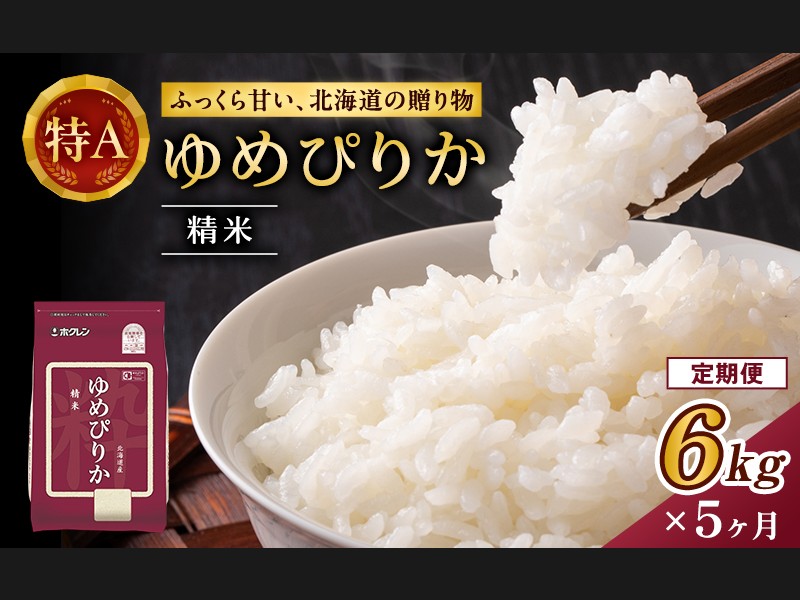 5ヵ月 定期便 ホクレンゆめぴりか(精米6kg(2kg×3袋))※チャック付袋 お...