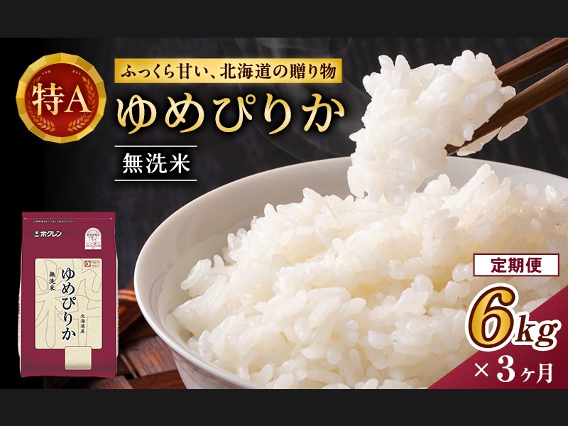 3ヵ月 定期便 ホクレンゆめぴりか(無洗米6kg(2kg×3))※チャック付袋 お...