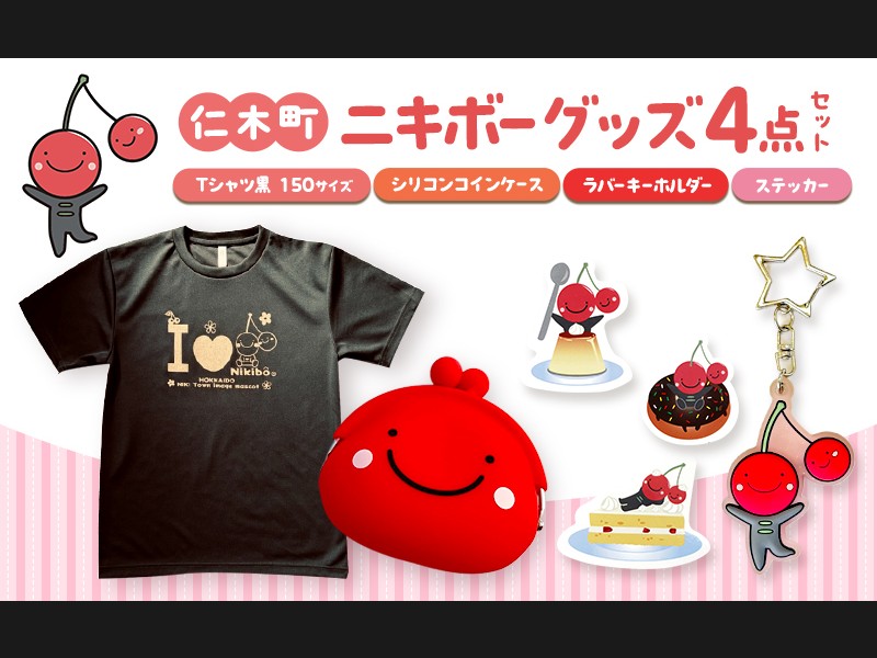 仁木町 ニキボーグッズ4点セット 黒(Tシャツ サイズ150・シリコンコインケ...