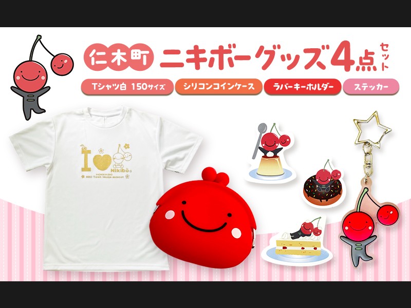 仁木町 ニキボーグッズ4点セット 白(Tシャツ サイズ150・シリコンコインケ...