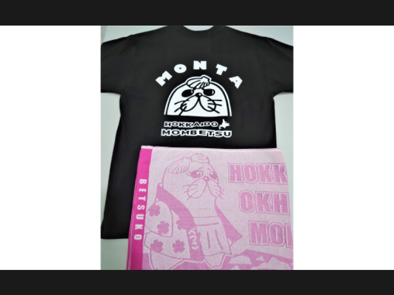 17-58 ゆるキャラ紋太・べつこグッズ(Tシャツ[ブラックS]、タオル[ピンク])