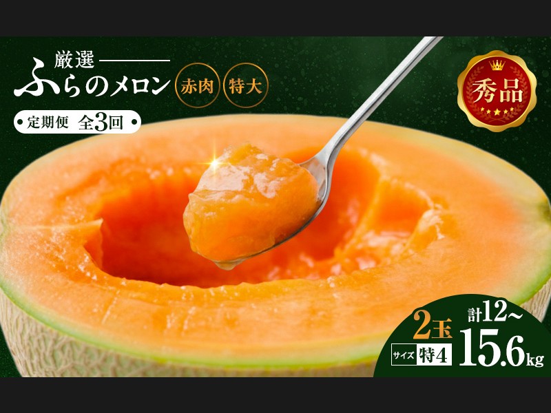 【令和8年産】定期便 全3回 メロン ふらの 赤肉メロン 2kg~2.6kg 2玉 厳...