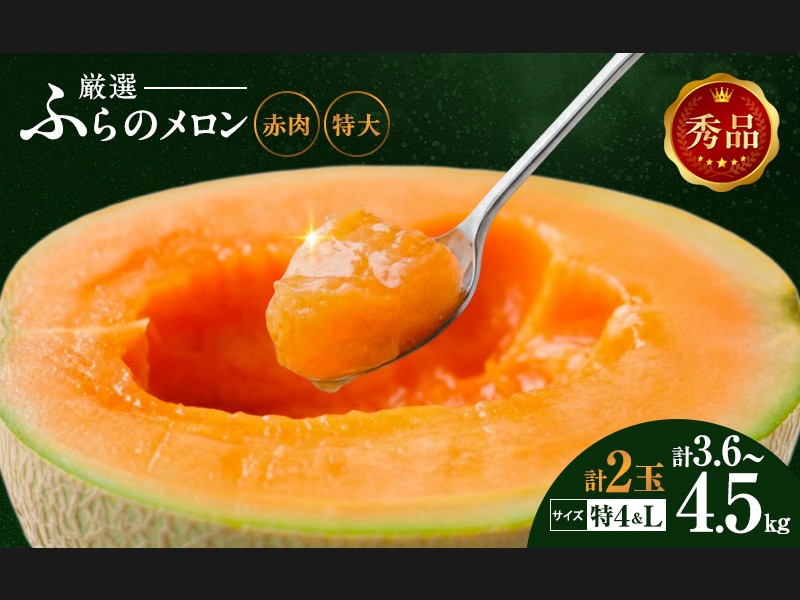 【令和8年産】ふらの 赤肉メロン 秀品 Lサイズ 1.6kg~1.9kg 2玉 セット ...