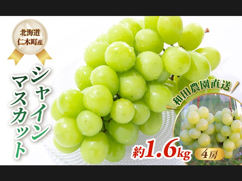[先行受付] 北海道 仁木町産 シャインマスカット 約1.6kg 4房(1房400g前...