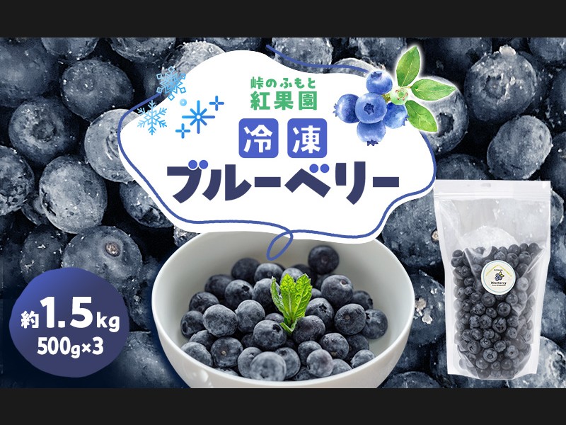 峠のふもと紅果園の冷凍ブルーベリー約1.5kg(500g×3)サイズ混載 果物 く...