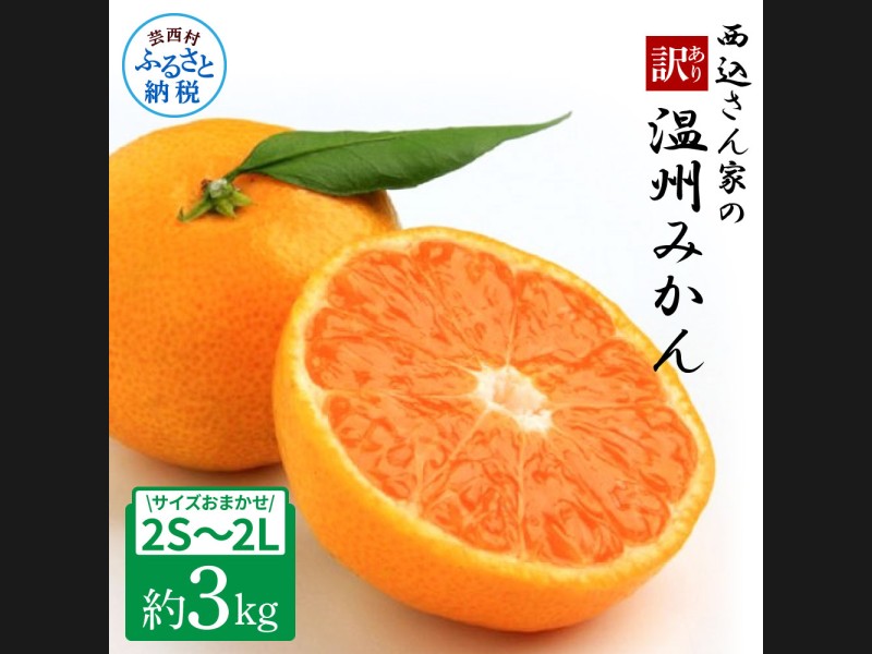 西込さん家の温州みかん 約3kg・サイズおまかせ(2S~2L) ワケあり品(外皮...
