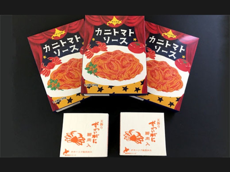 ズワイガニのほぐし身と隠し味にカニみそを使用した旨味たっぷりの「カニトマトソース」に「ずわいがに天飾り缶詰」をのせてお召し上が...