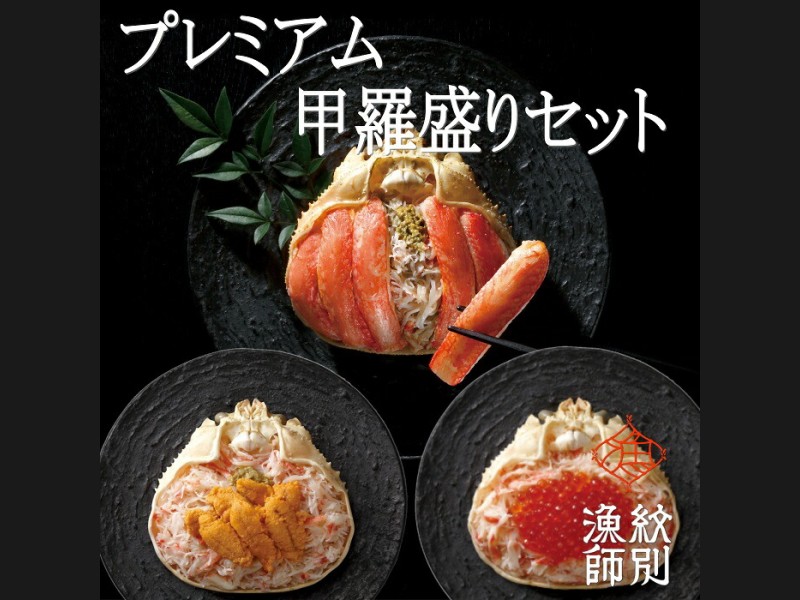 毛がに、ずわいがにをまるごと一杯使用したプレミアム甲羅盛りに「むしうに」や「いくら醤油漬」がのったとっても贅沢なセットです。定...