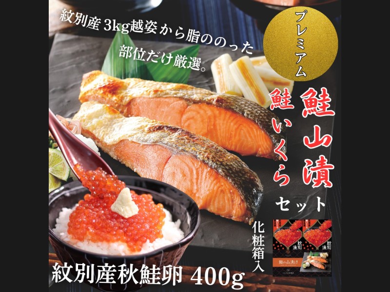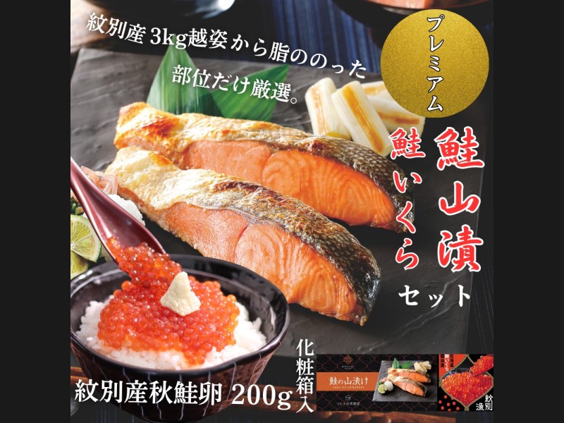 41-18 【紋別産】プレミアム鮭山漬 鮭いくら白醤油漬Aセット 化粧箱入