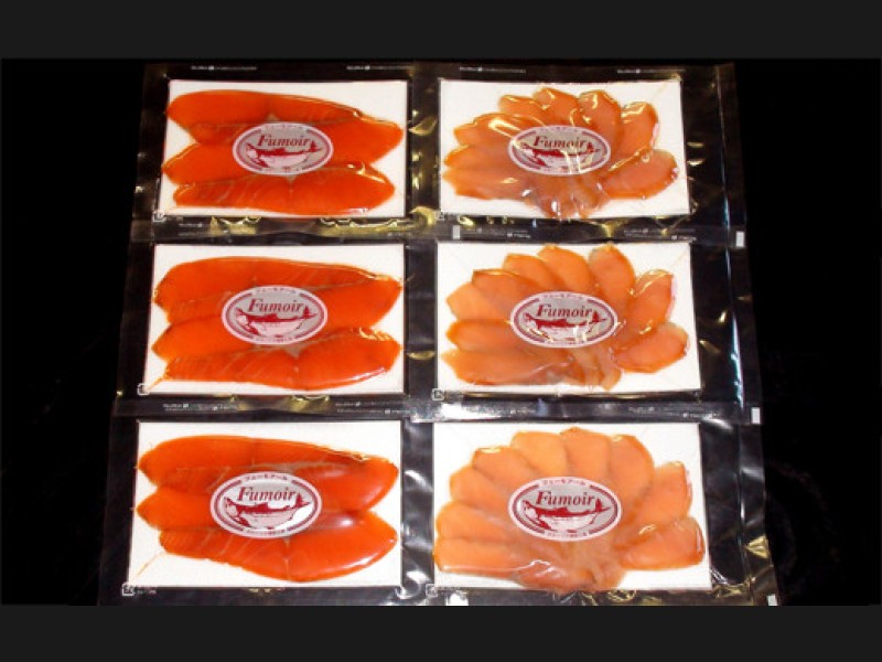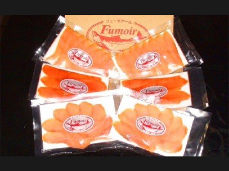 天然物の紅鮭とカラフト鱒のスモークサーモンの食べくらべセットです。 昔ながらの方法で北海道のミズナラのおがくずでスモークした逸品...
