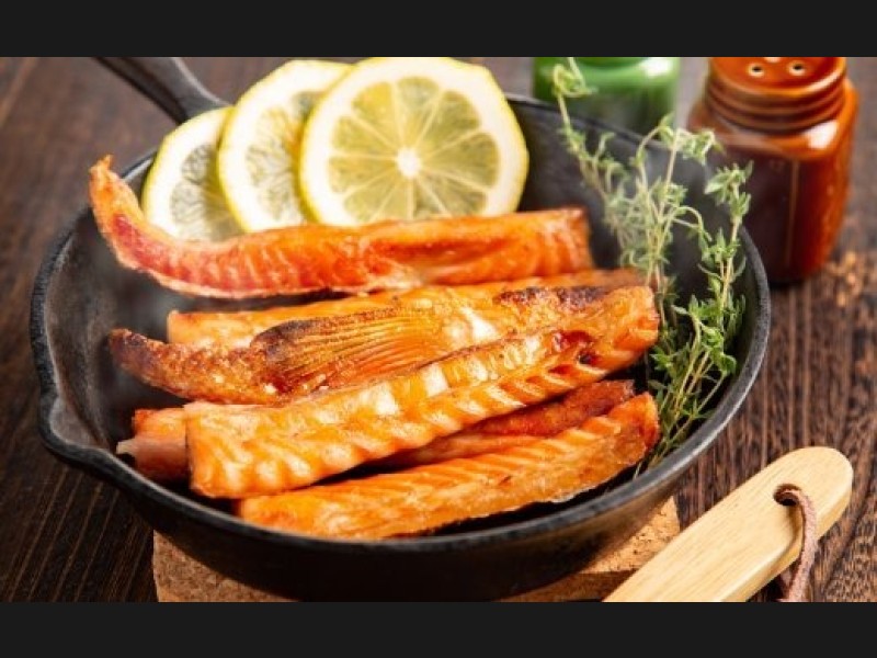 アトランティックサーモンのハラスの部位を醤油ベースのタレで味付けし一夜干しました。 フライパンでも簡単に調理できます。 ※画像はイ...