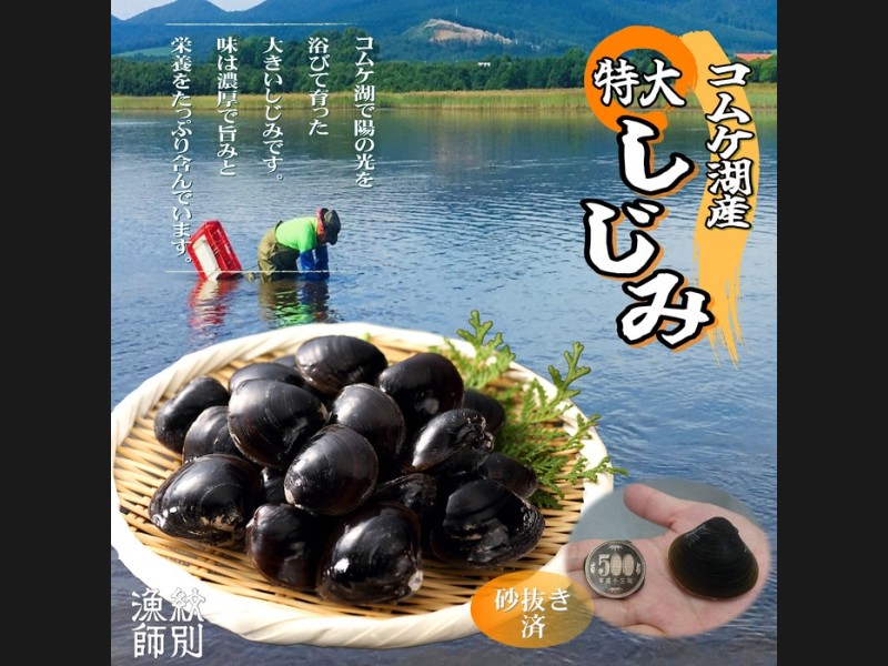 北海道紋別市コムケ湖で水揚げされた特大のしじみです。 コムケ湖はオホーツク海と一部でつながっており、最大水深4メートル平均水深2...
