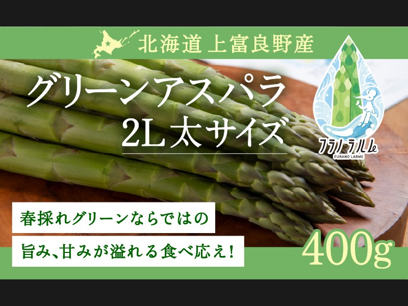 北海道・上富良野町産 グリーンアスパラガス「フラノラルム」2Lサイズ 400g(目安9~10本) 北海道らしい力強い太さと、じゅわっとあ...