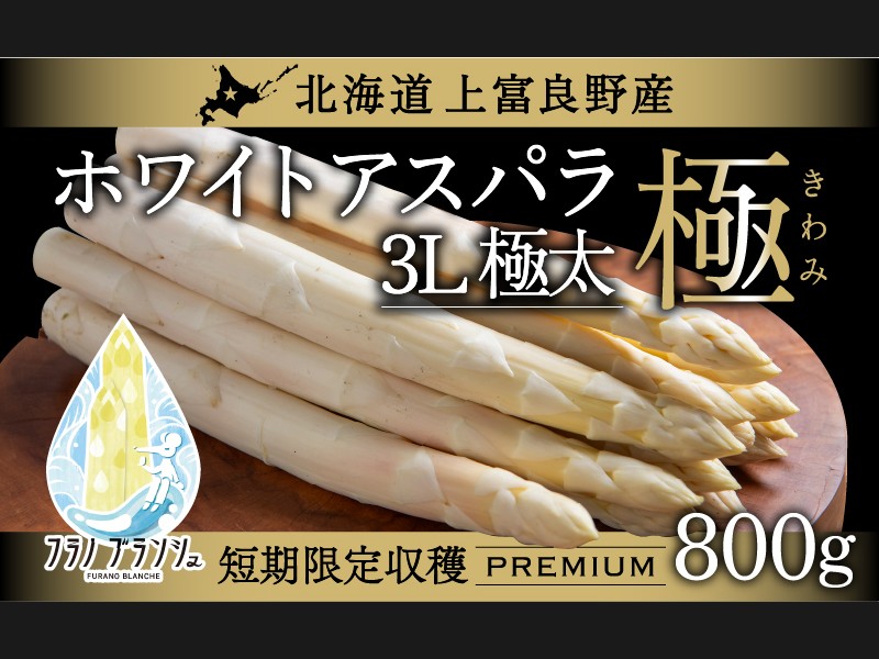 北海道・上富良野町産 ホワイトアスパラガス「フラノブランシュ」3Lサイズ 800g(目安10~16本) 北海道上富良野町で春だけに収穫さ...